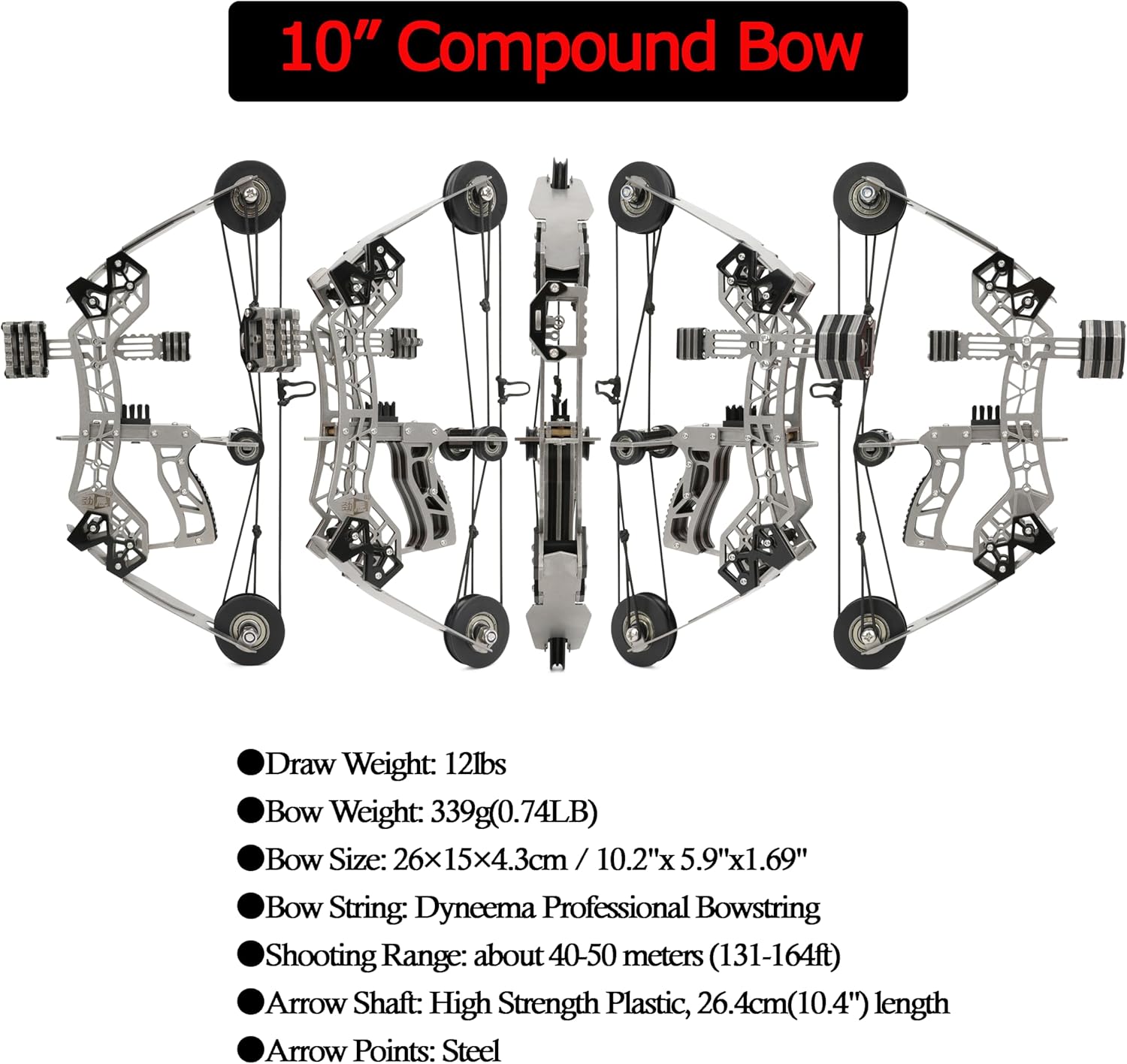 At just 10.2 inches and 339g, this bow packs serious power. With a 12 lbs draw weight and up to 50m range, it delivers reliable performance in a lightweight, easy-to-carry design.