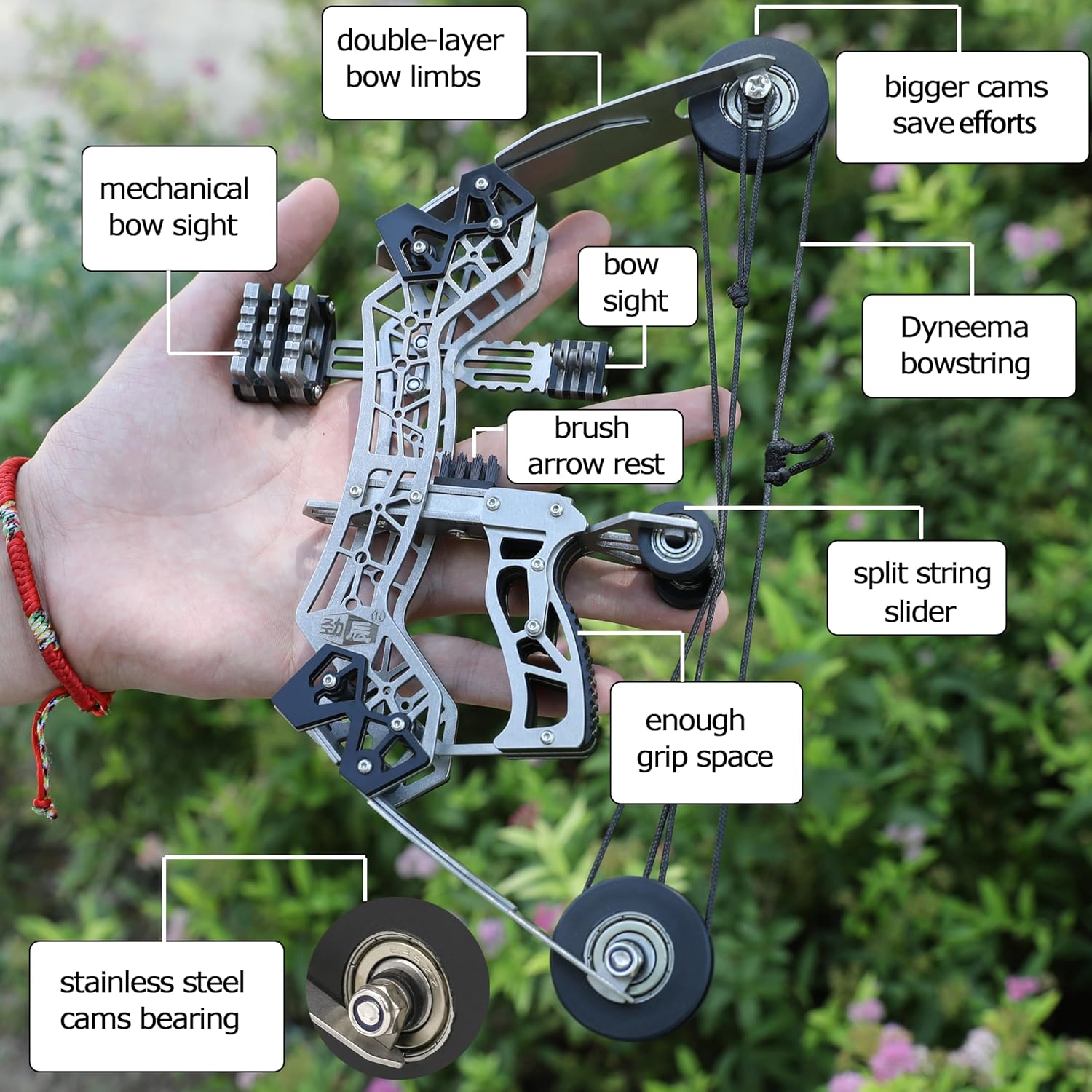 Featuring stainless steel bearings, mechanical sight, and ergonomic grip, this bow reduces effort while maximizing control. Ideal for practice, outdoor fun, or as a unique gift.